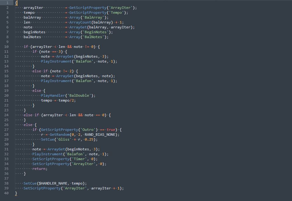 A very high-level breakdown of the procedural balafon music machine I made for Guild Wars 2 using the proprietary audio engine's scripting language. This can be found in a tiki bar in Lion's Arch map.